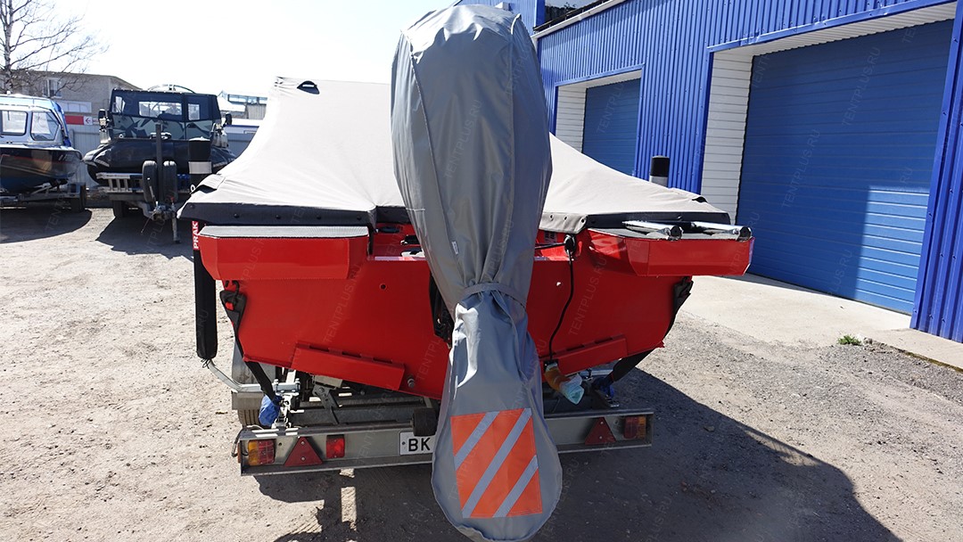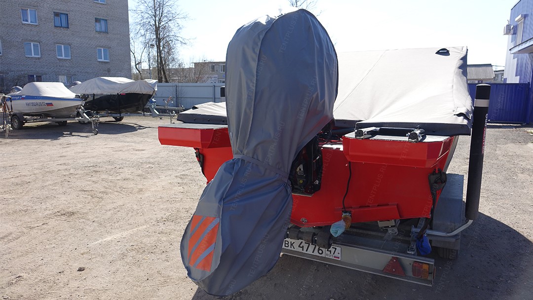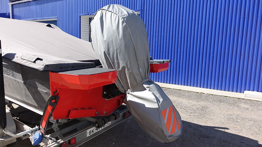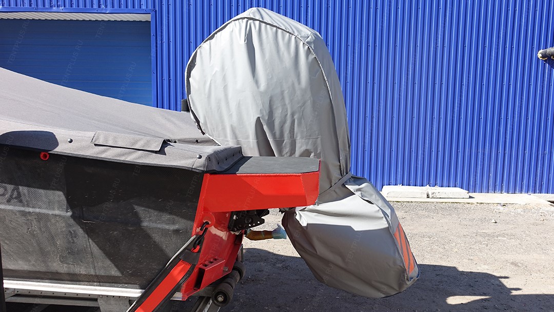Чехол из прочной ПВХ ткани, изготавливается по форме корпуса мотора.
