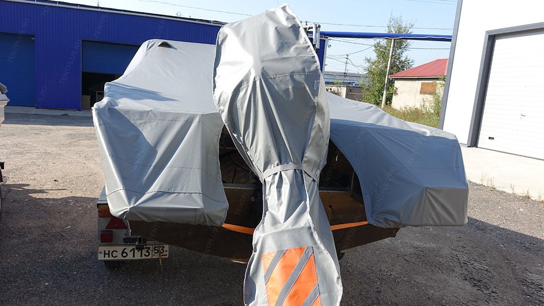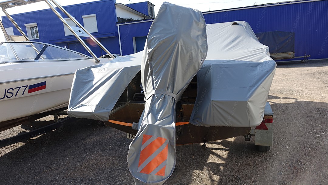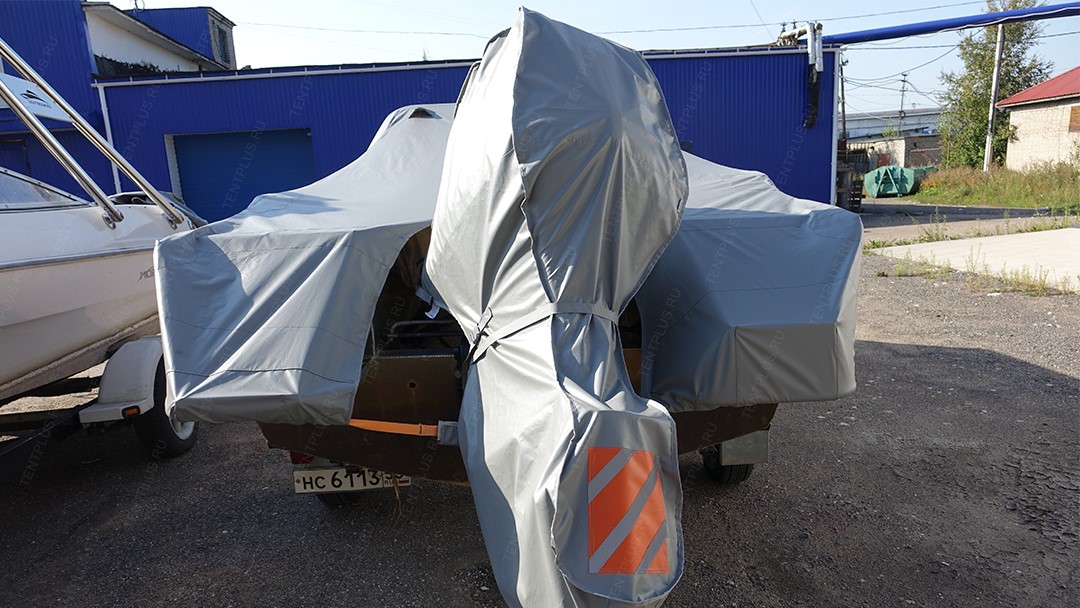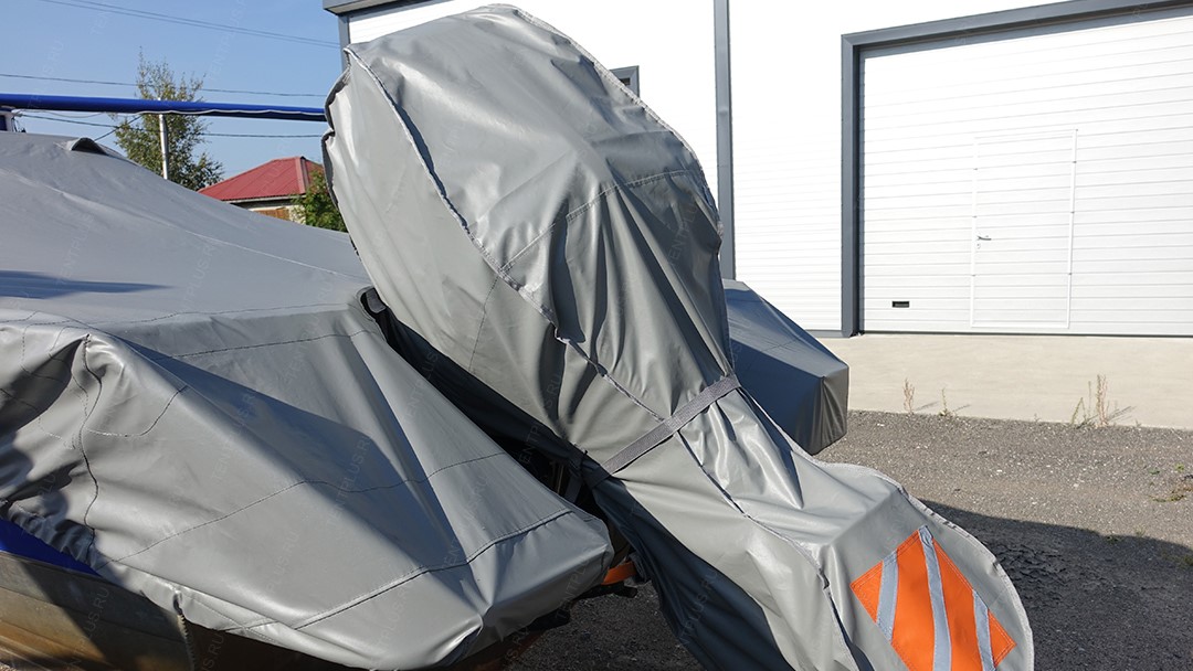 Чехол из прочной ПВХ ткани, изготавливается по форме корпуса мотора.