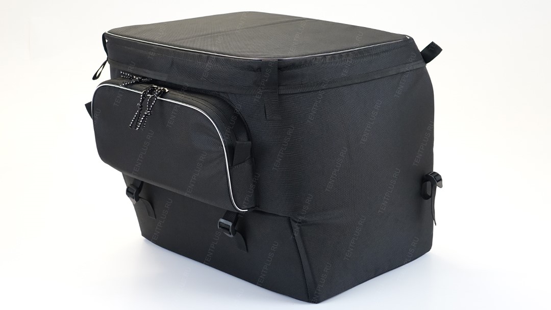 Для производства кофра используется мощная витая молния шириной 10 мм, звенья молнии обращены во внутрь , что предотвращает образование наледи, снега на звеньях. Опционально в крышке установлен монолитный поликарбонат, который послужит столиком для перекусов. Под поликарбонатом установлен ППЭ толщиной 10 мм.