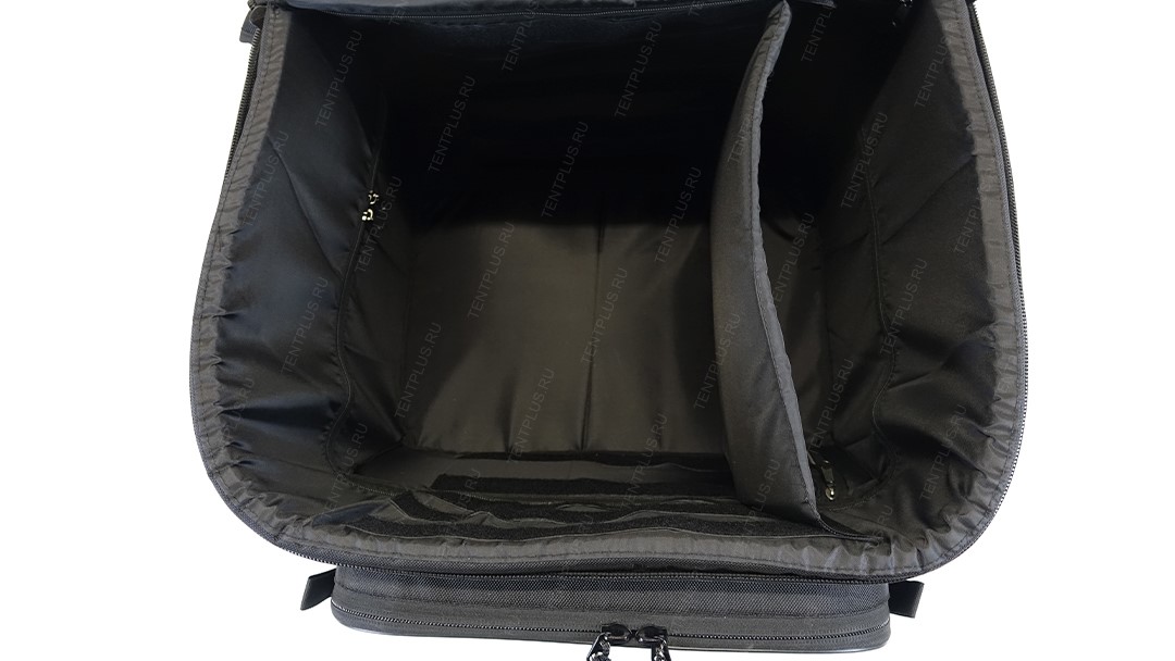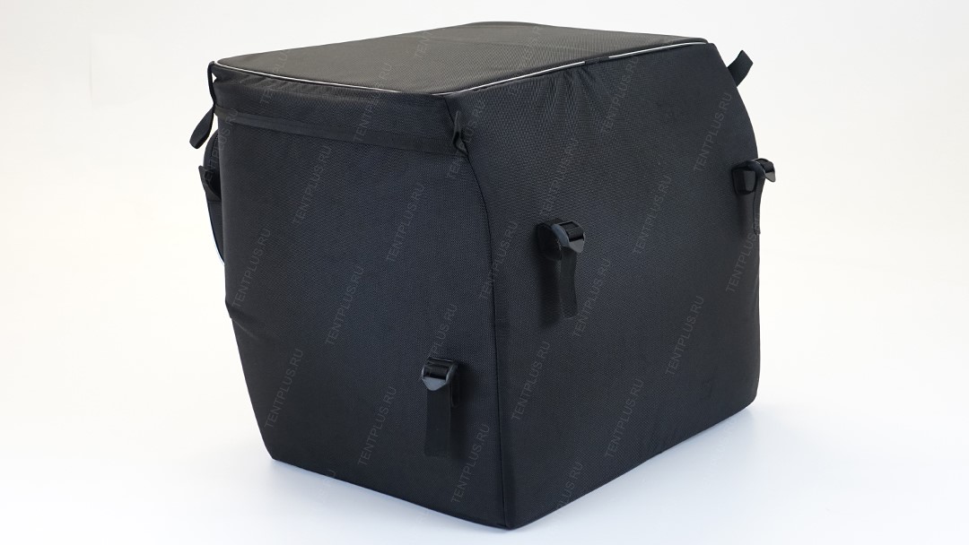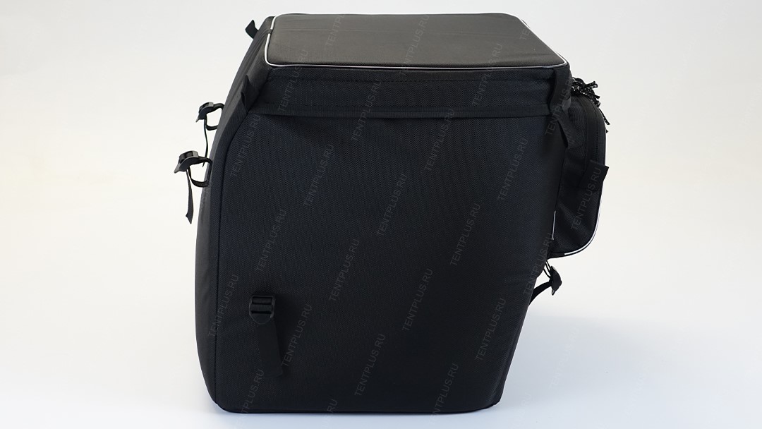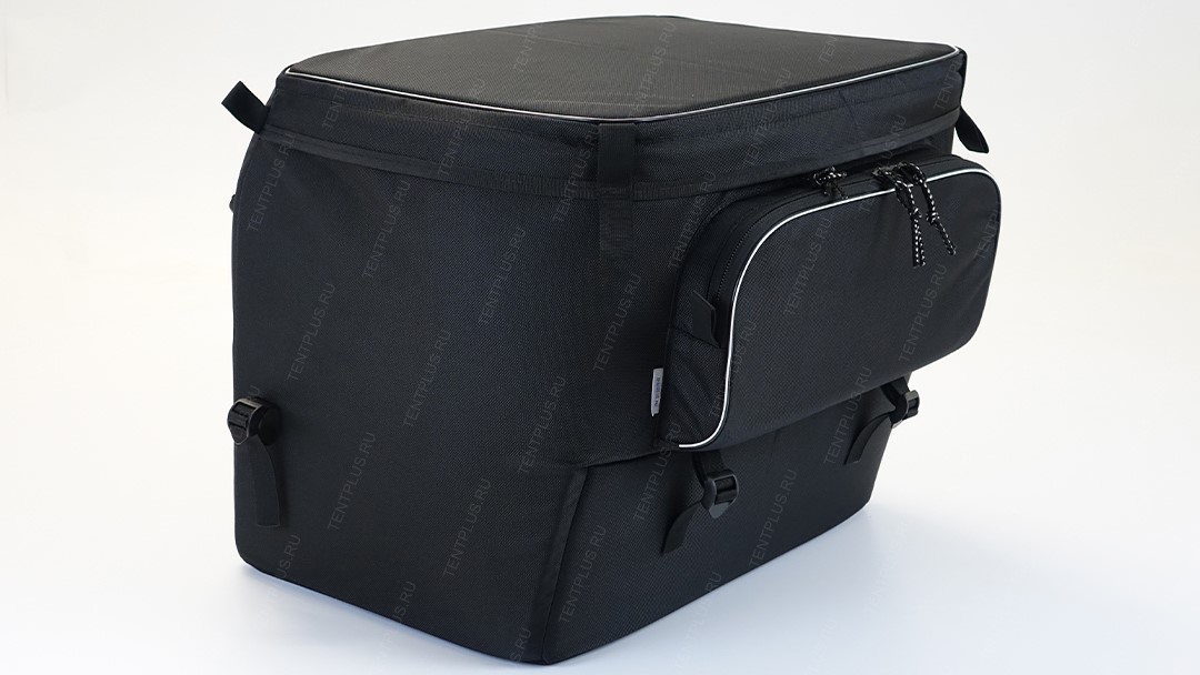 Кофр изготовлен из водонепроницаемой ткани Oxford 1680 D PU с полиуретановым покрытием в чёрном цвет..