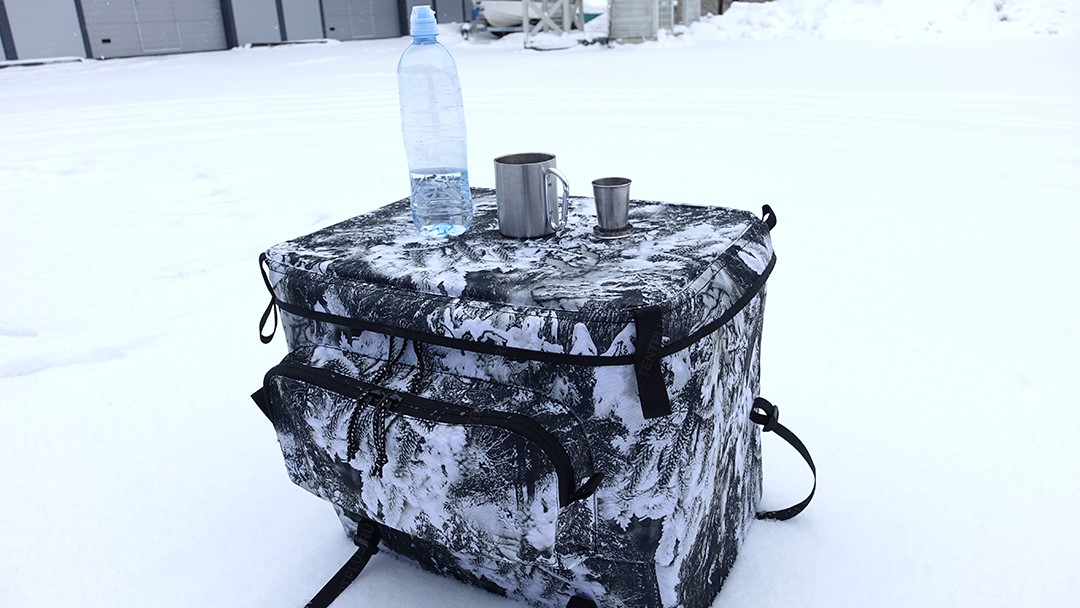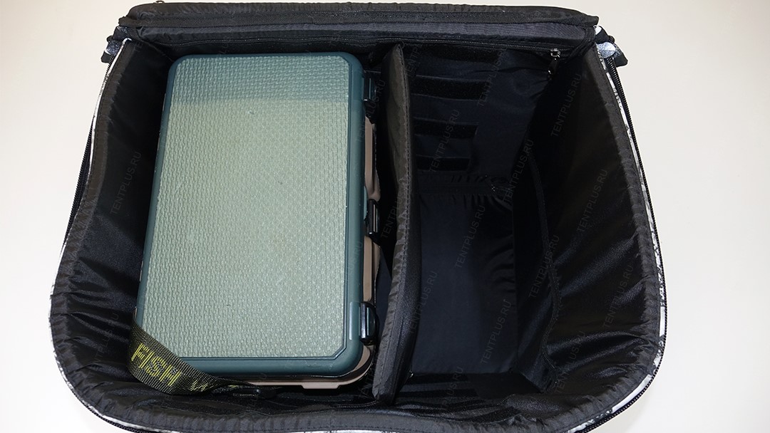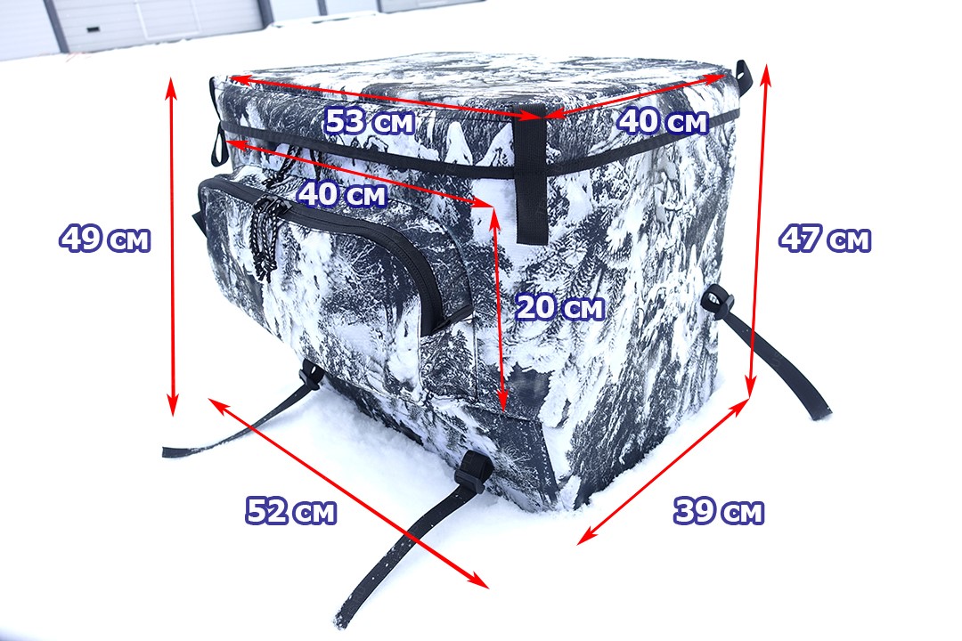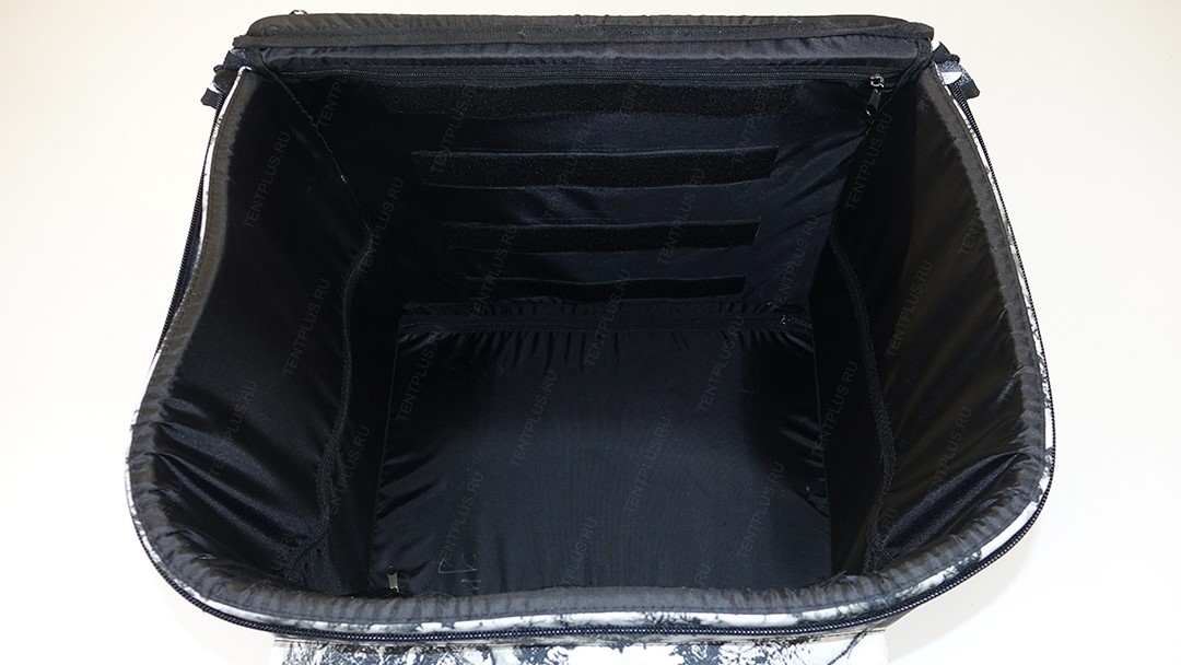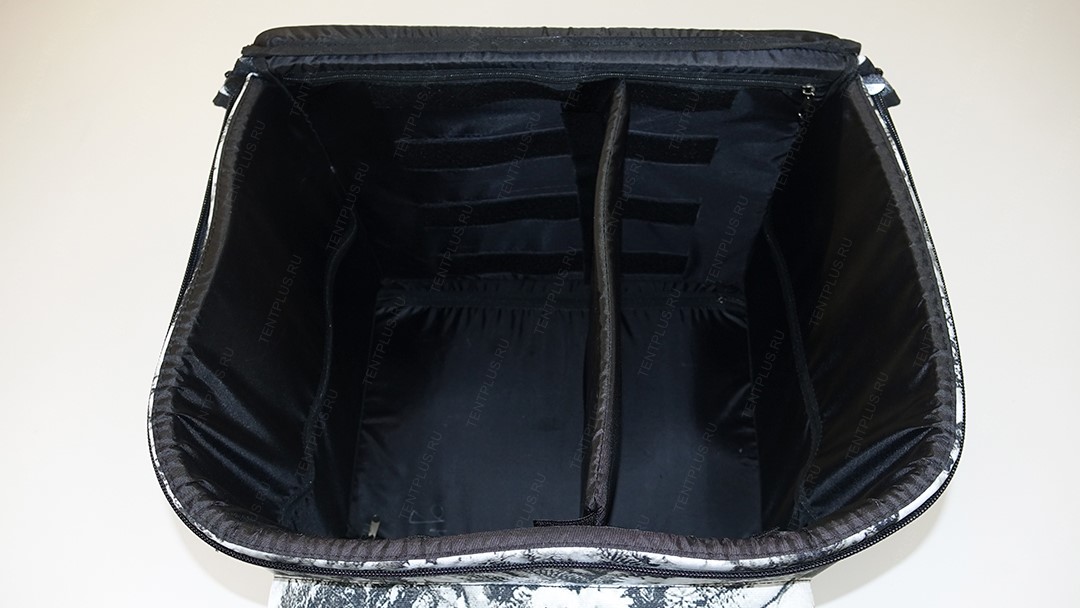Для производства кофра используется мощная витая молния шириной 10 мм, звенья молнии обращены во внутрь , что предотвращает образование наледи, снега на звеньях. Опционально в крышке установлен монолитный поликарбонат, который послужит столиком для перекусов. Под поликарбонатом установлен ППЭ толщиной 10 мм.