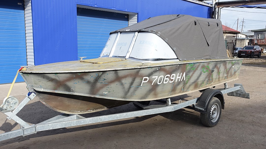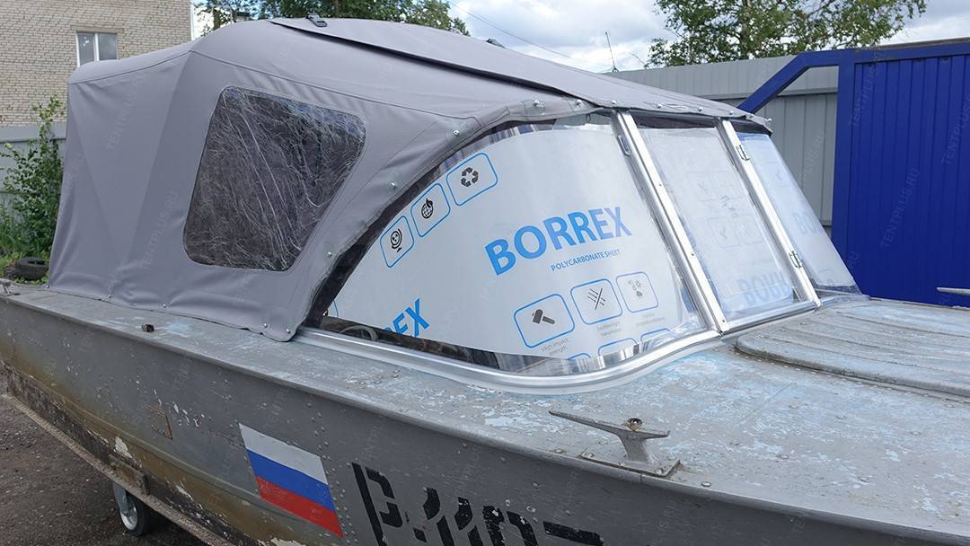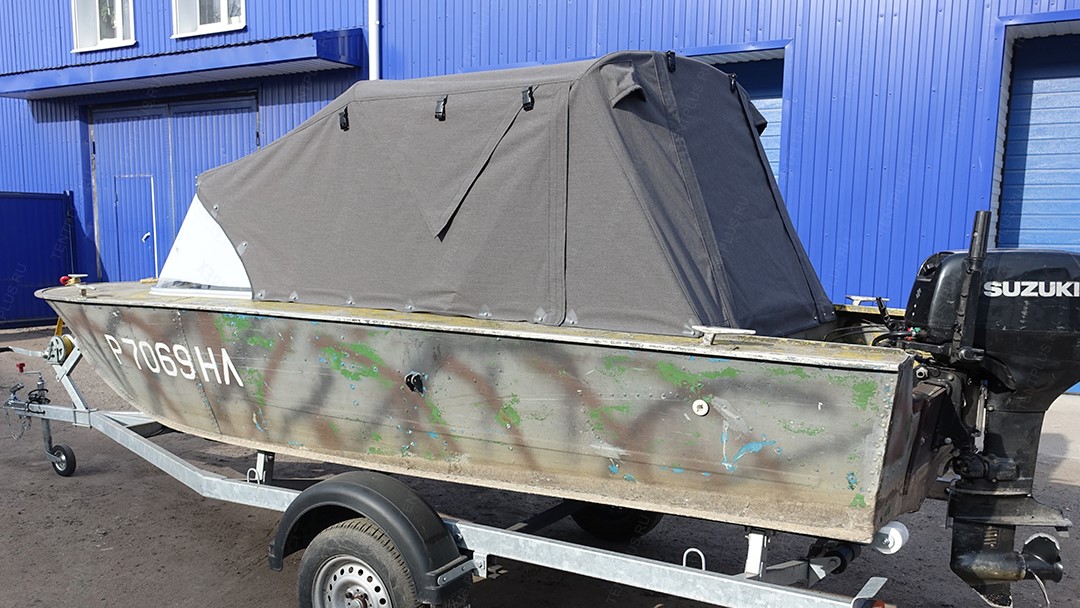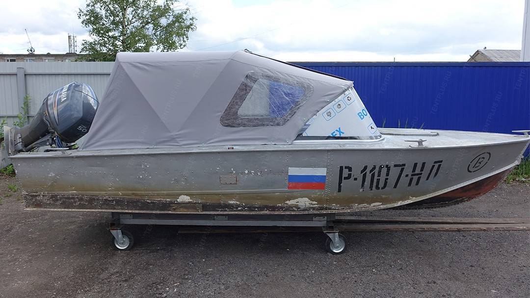 Ходовой тент для лодки Прогресс-4, представленный в широких вариациях, обеспечивает комфорт во время..