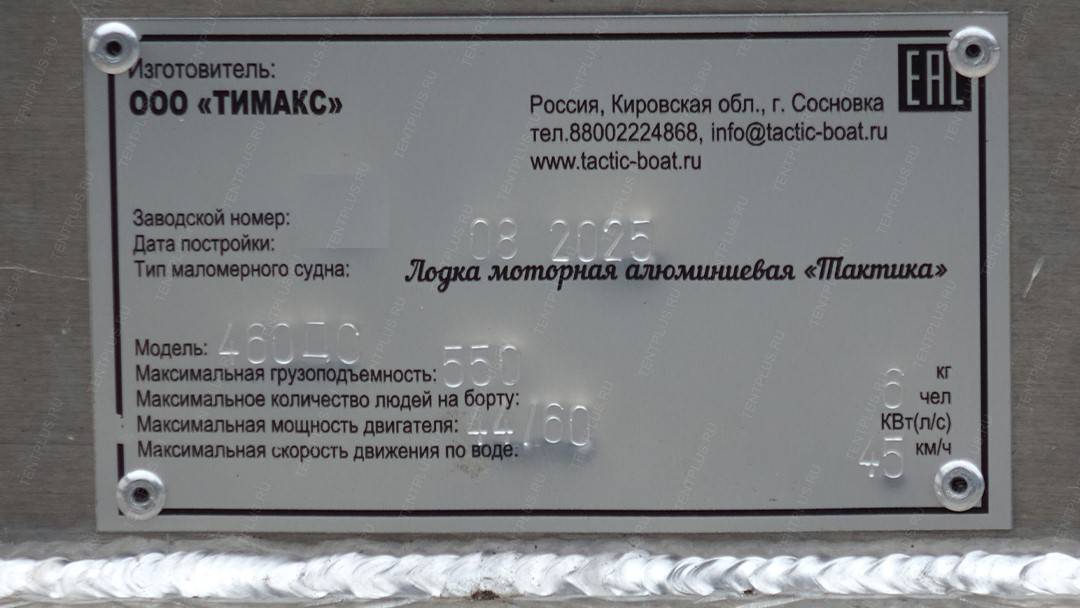 Внимание! На данную модификацию лодки также изготавливаем - Тент трансформер Тактика 460 DC