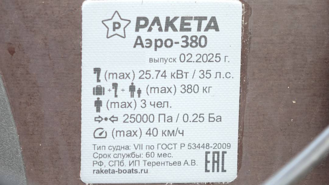 | Модель лодки | Аэролодка Ракета 380 |