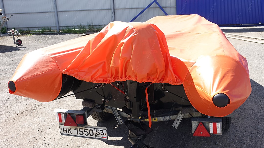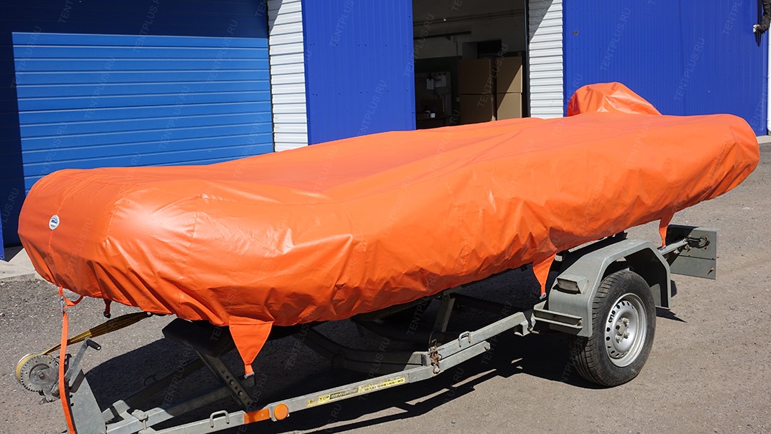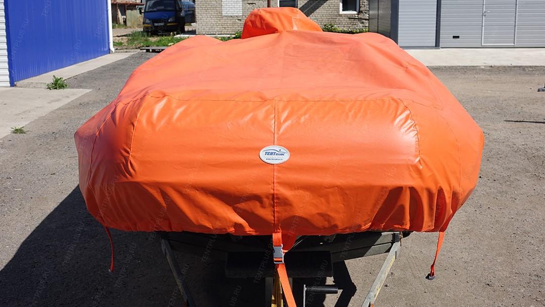 Тент предназначен для перевозки лодки на ближние и дальние расстояния, тем самым защищает корпус от осадков, пыли, грязи.