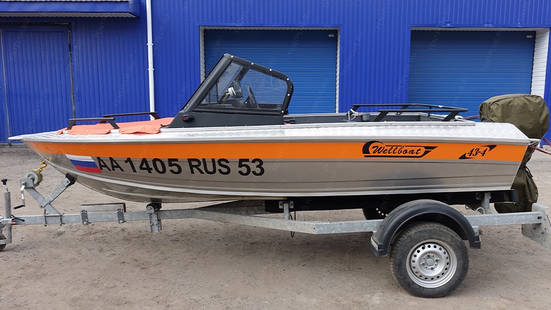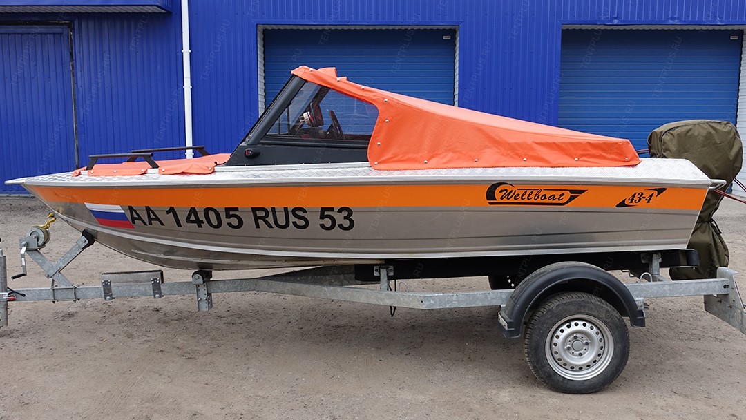 Тент стояночный на лодку Вельбот 43-4 (Wellboat 43-4)