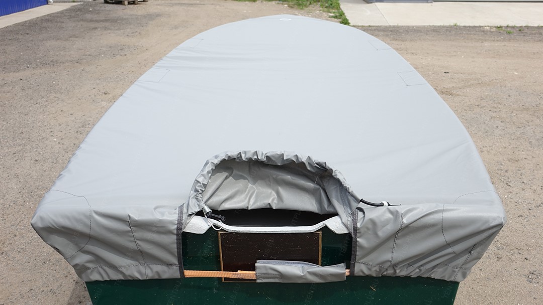 Тент предназначен для перевозки лодки на ближние и дальние расстояния, тем самым защищает корпус и стекло от осадков, пыли, грязи.