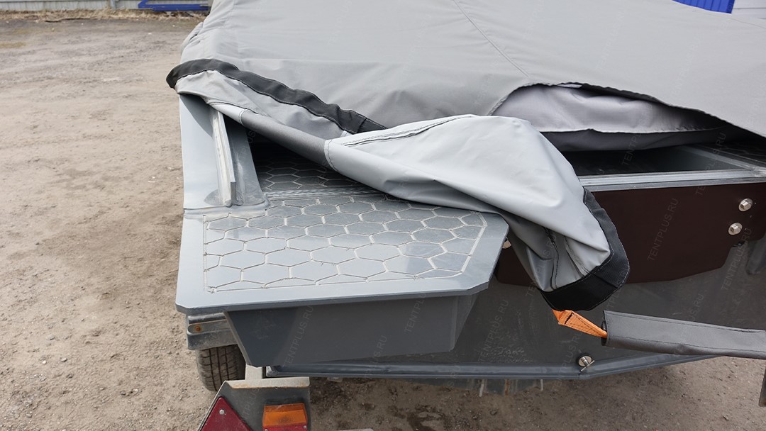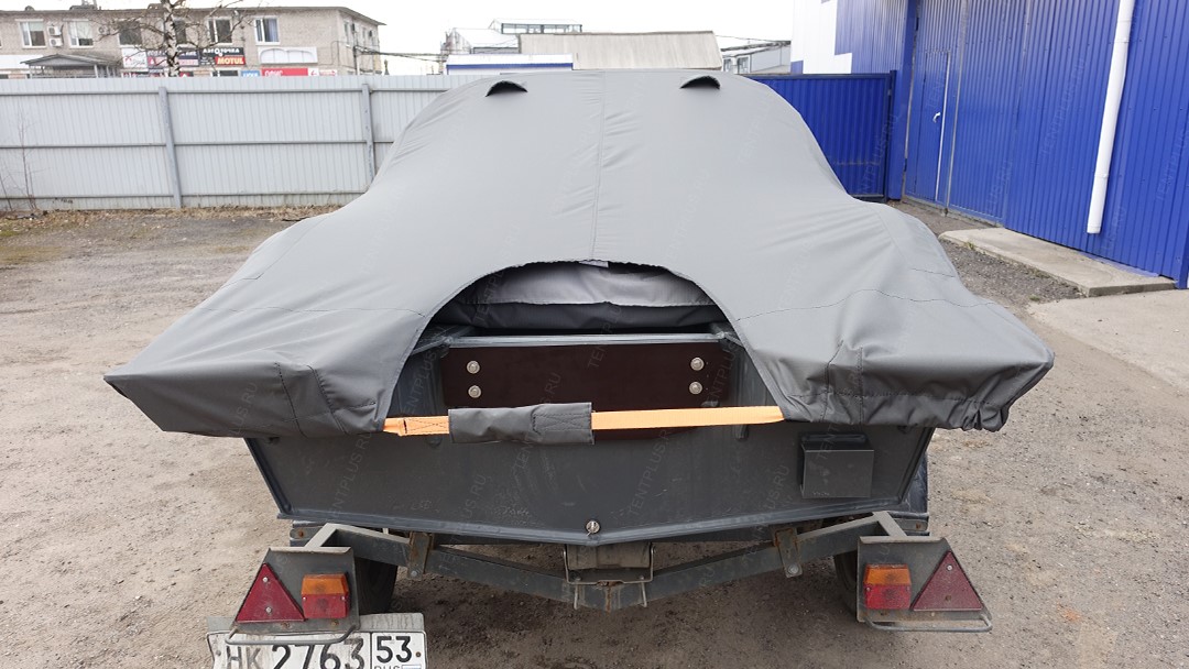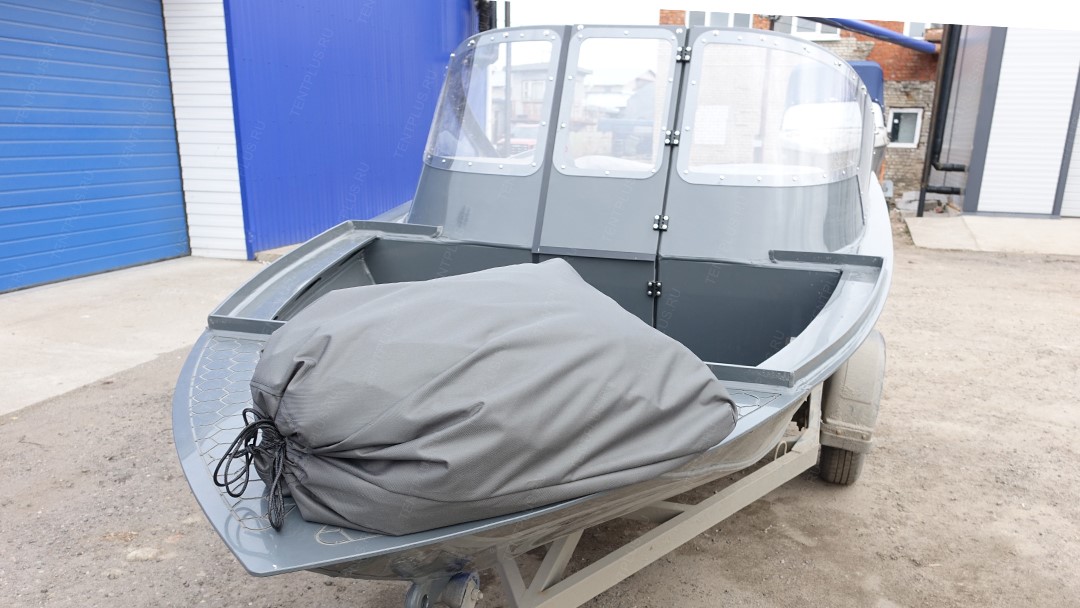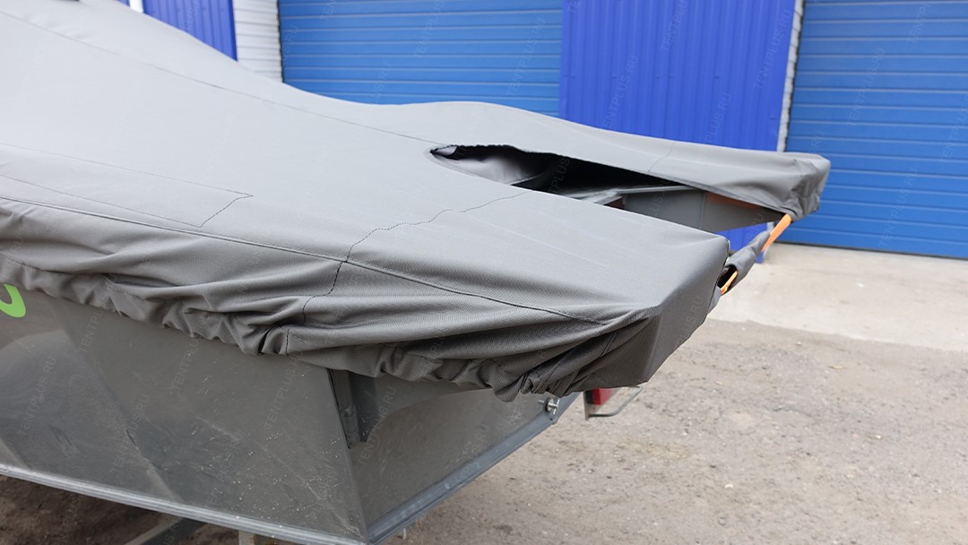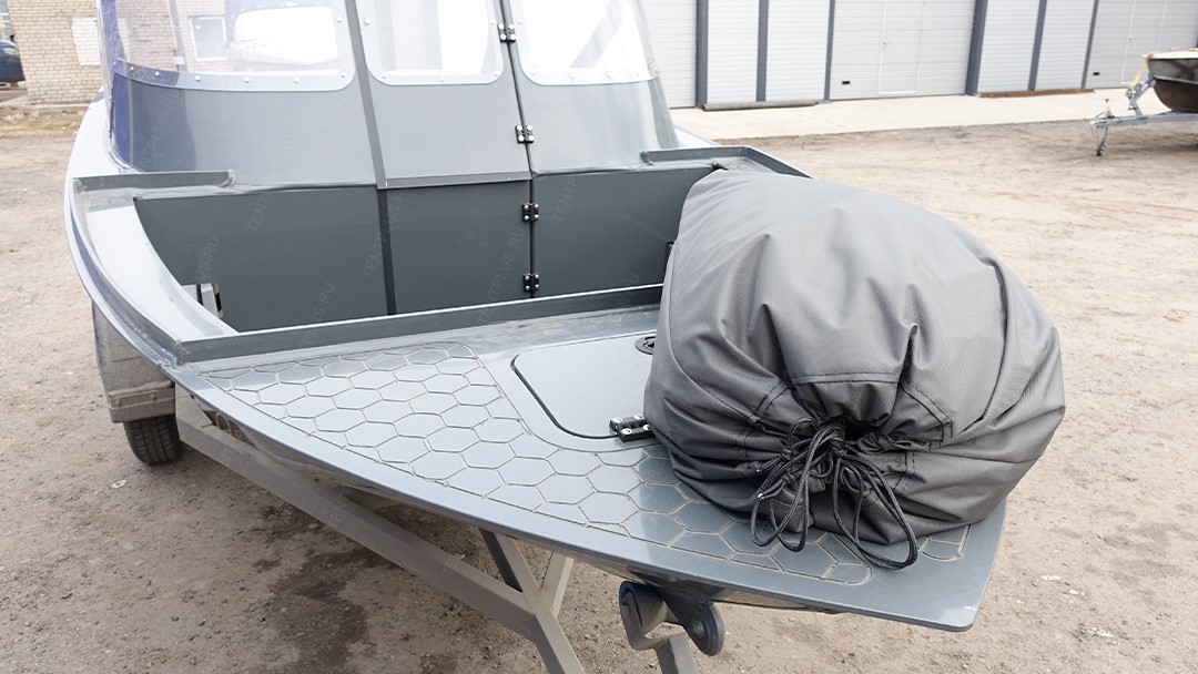 Тент предназначен для перевозки лодки на ближние и дальние расстояния, тем самым защищает корпус и стекло от осадков, пыли, грязи.