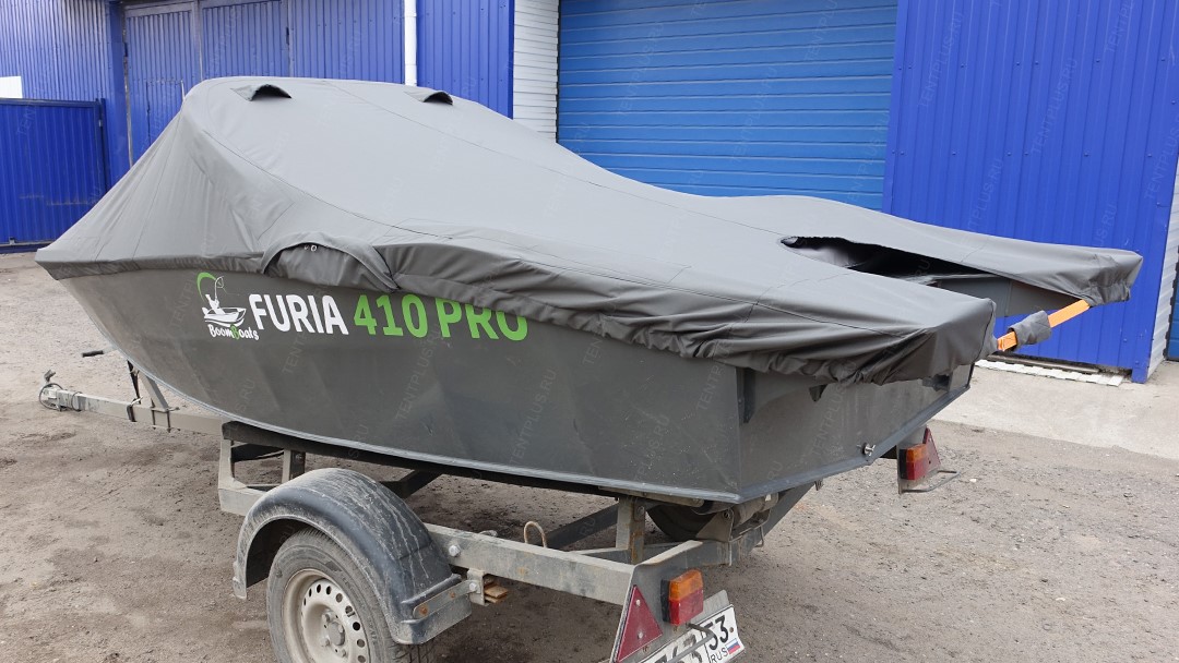 Тент транспортировочный на лодку Furia 410 PRO F (Boomboats) с храповыми механизмами Видео-обзор ..