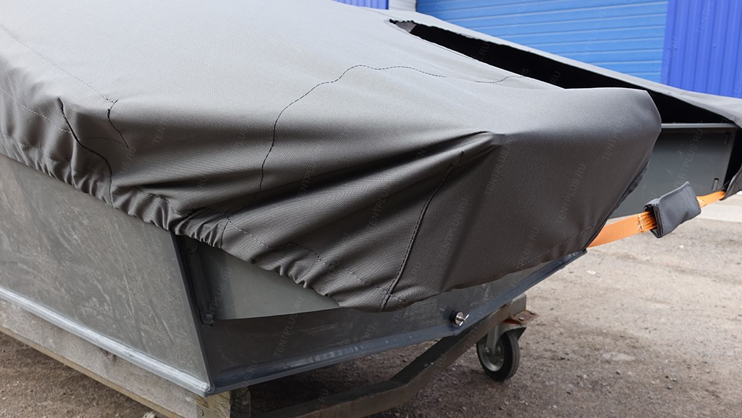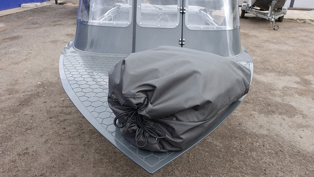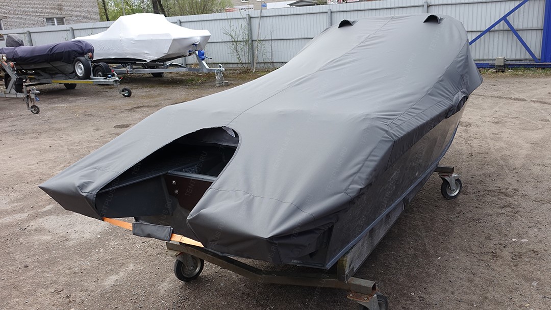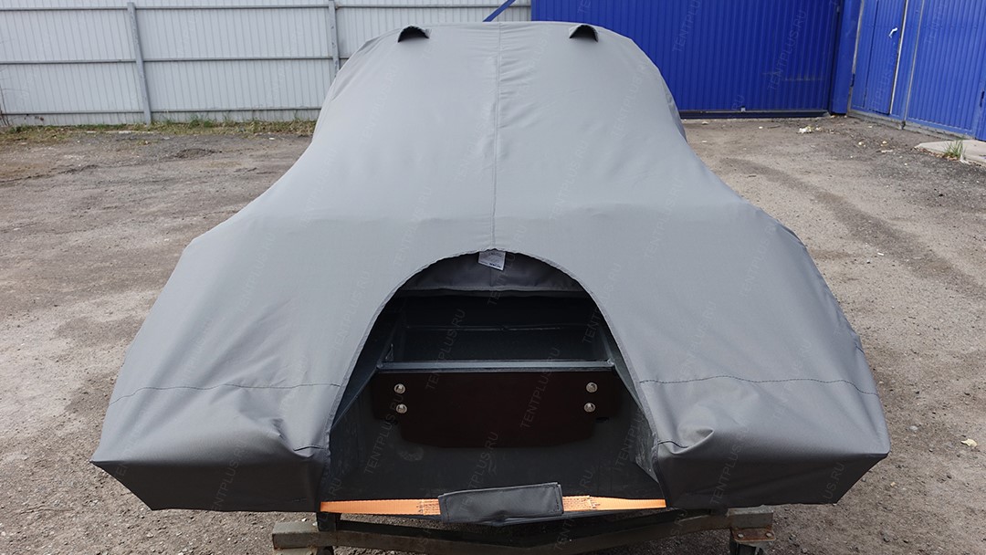 Тент предназначен для перевозки лодки на ближние и дальние расстояния, тем самым защищает корпус и стекло от осадков, пыли, грязи.