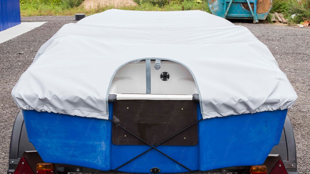 Тент предназначен для перевозки лодки на ближние и дальние расстояния, тем самым защищает корпус и стекло от осадков, пыли, грязи.