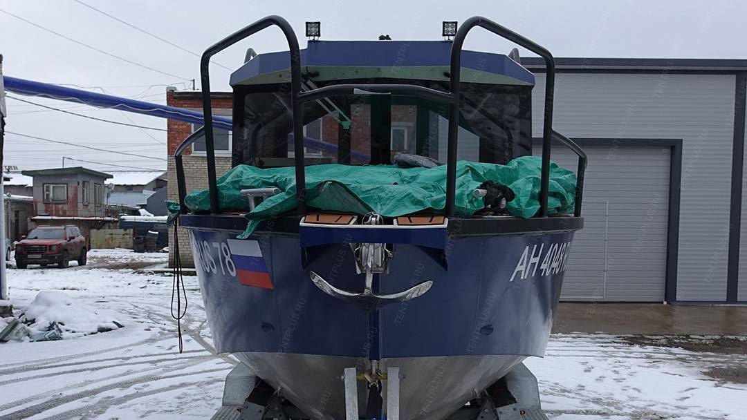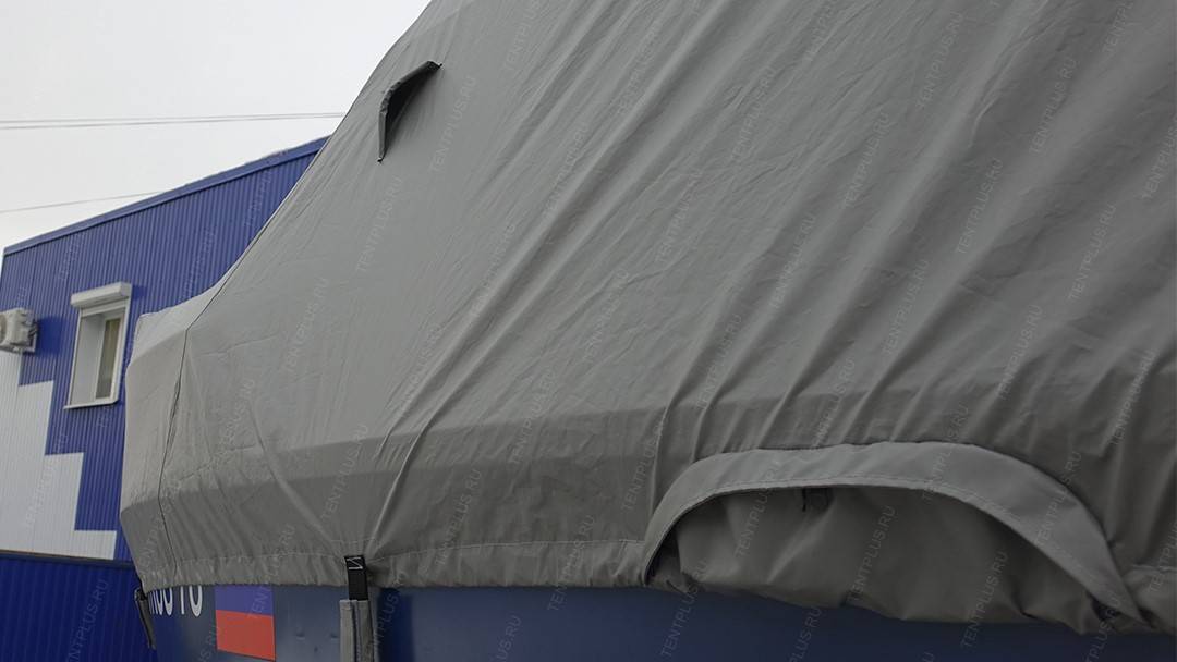 Тент предназначен для перевозки лодки на ближние и дальние расстояния, тем самым защищает корпус и стекло от осадков, пыли, грязи.
