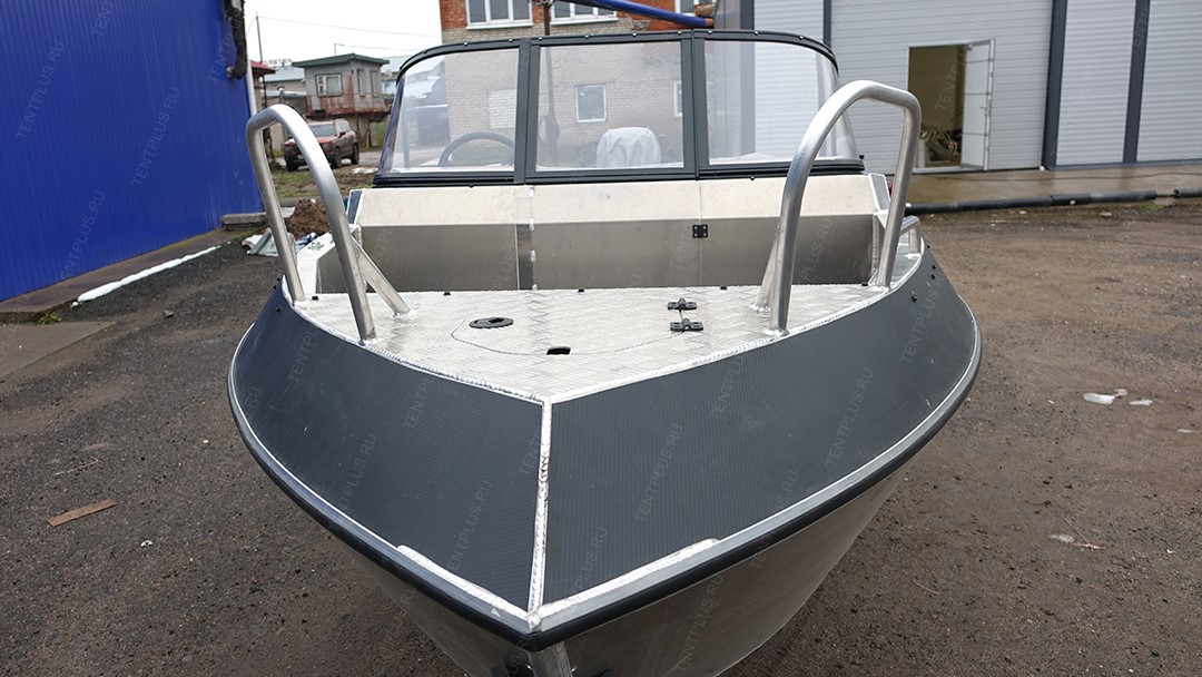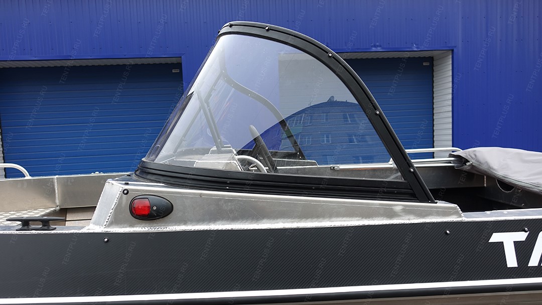 Обратите внимание на приподнятое стекло, кринолины и другие детали лодки (у производителя лодок могут быть разные модификации). Тент изготовлен с учётом тента-трансформера.