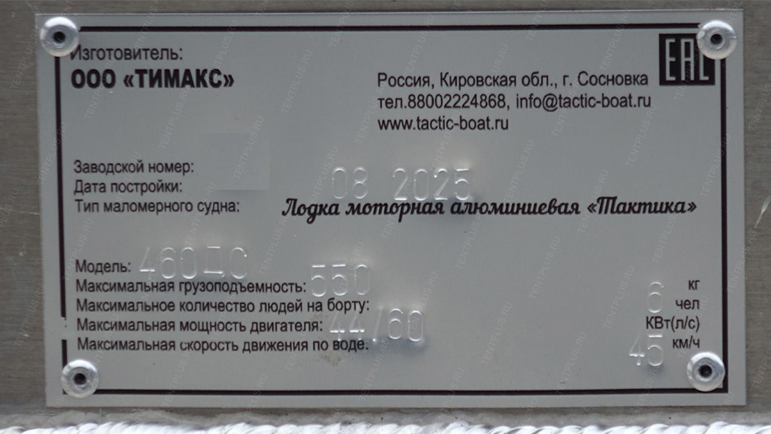 | Модель лодки | Тактика 460 ДС (2025 года выпуска) |