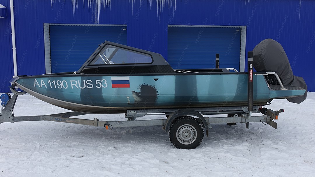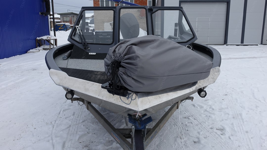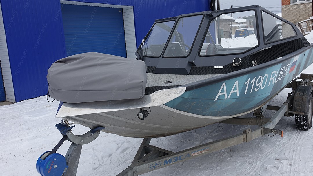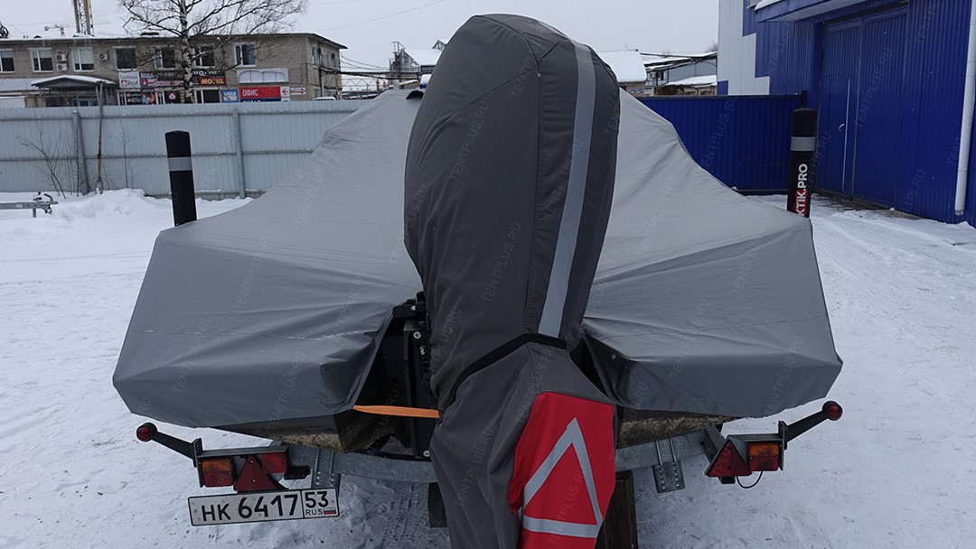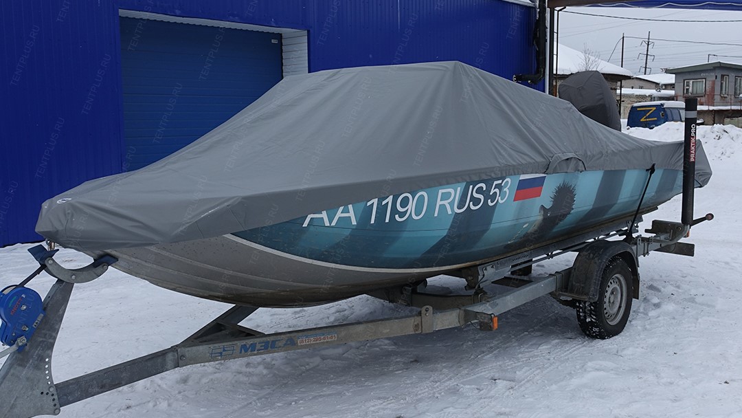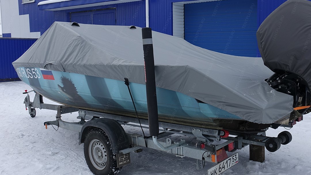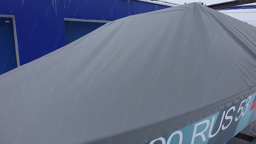Тент предназначен для перевозки лодки на ближние и дальние расстояния, тем самым защищает корпус и стекло от осадков, пыли, грязи.