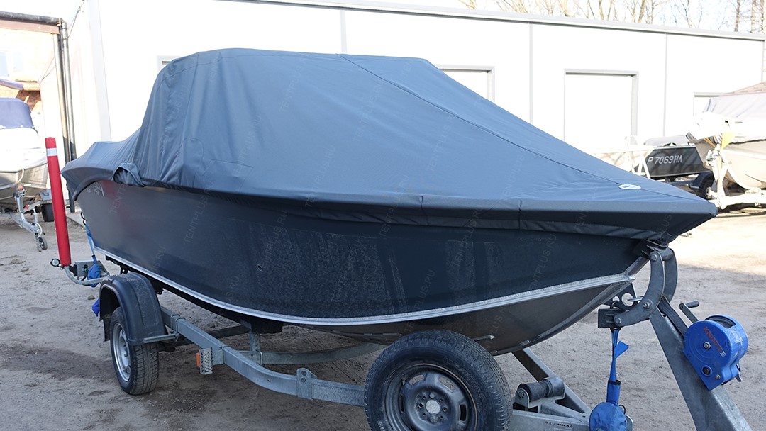 Тент предназначен для перевозки лодки на ближние и дальние расстояния, тем самым защищает корпус и стекло от осадков, пыли, грязи.